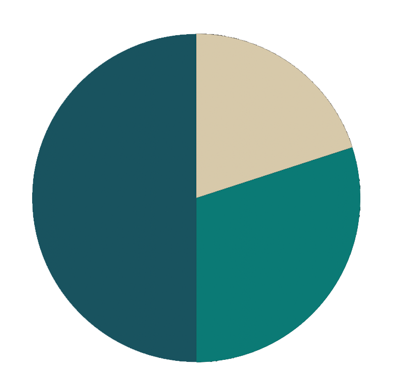 If we look at this pie chart as a representation of the 50/30/20 rule, then up to 50% of your budget will be spent on your essentials. 30% will be allocated to your discretionary spending, and then the final 20% is going towards your savings or paying down your debt.