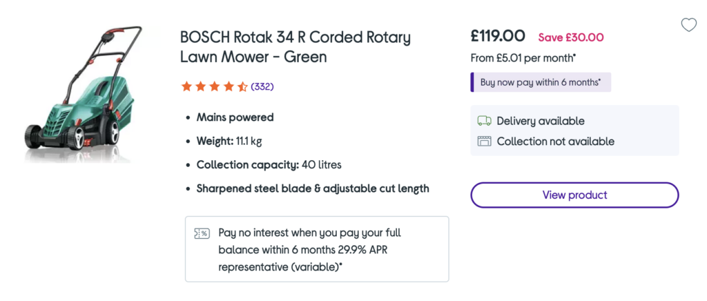 Of course, there are some of you who’ll be quick to point out that we’ll “Pay no interest when you pay your full balance within 6 months”. And that’s valid if you are strict enough to ensure this is repaid. But what if an emergency happened and you could not afford the repayment? Further debt is the answer. I promise you this wouldn’t be an option if it was used extensively by customers. The credit companies are not your friend and the fact that they present this offer so prominently, means that many customers don’t pay off within 6 months.