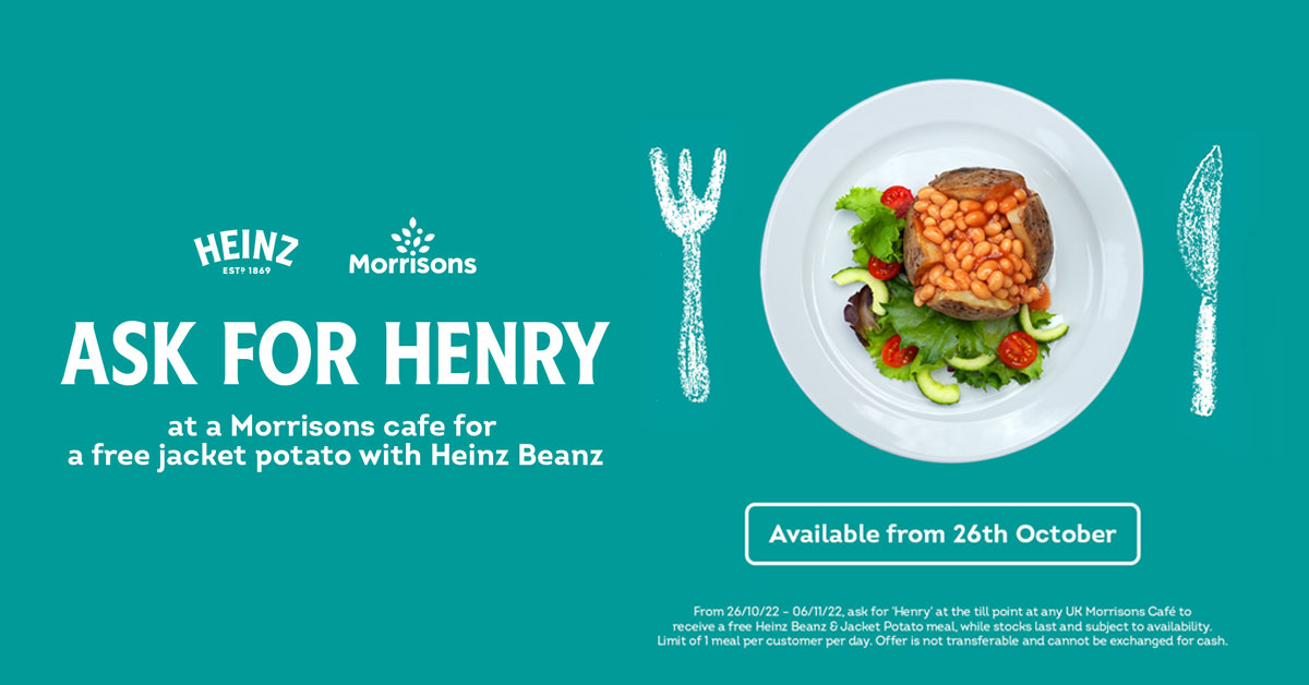 Sian Whittle, Category Director of Morrisons Cafés, said: “We know that our customers are under real financial pressure at the moment and are therefore pleased to be partnering with Heinz on its ‘ask for Henry’ initiative to offer customers a free jacket potato topped with Beanz.”
